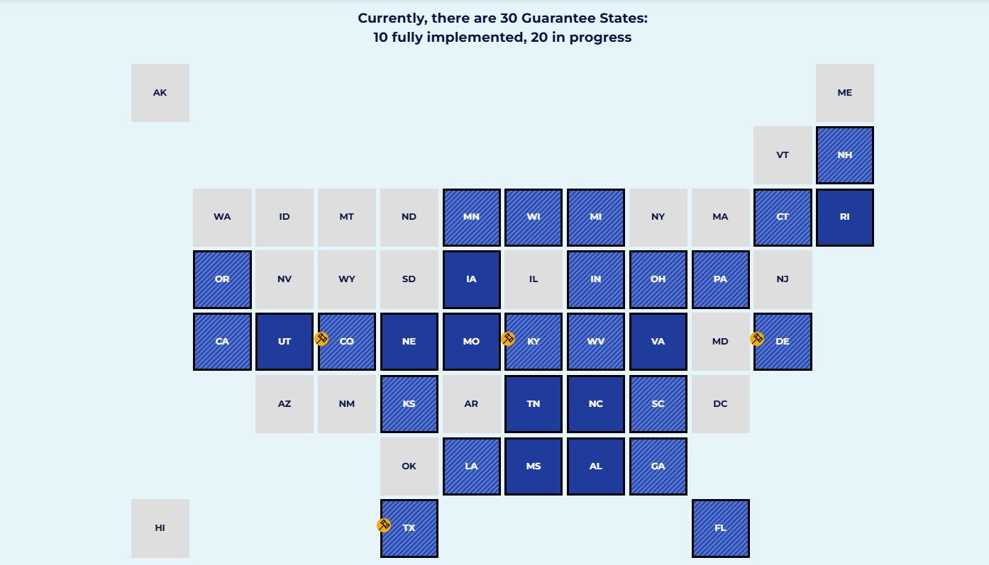 Other states are leading the way. As of 2025, 30 states guarantee a course in personal financial education before students graduate and other states have legislation working through their legislatures. Learn more about legislation in other states in the bill tracker on the NGPF website.